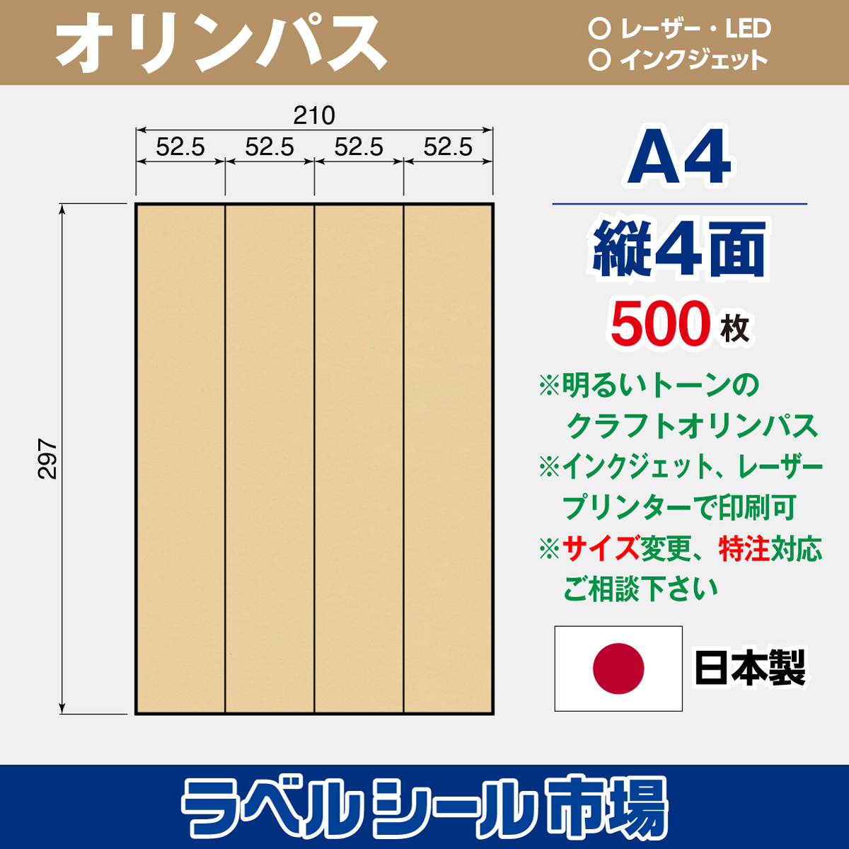 | A4-縦4面 500枚 半晒クラフト オリンパス T4Y1O | |
