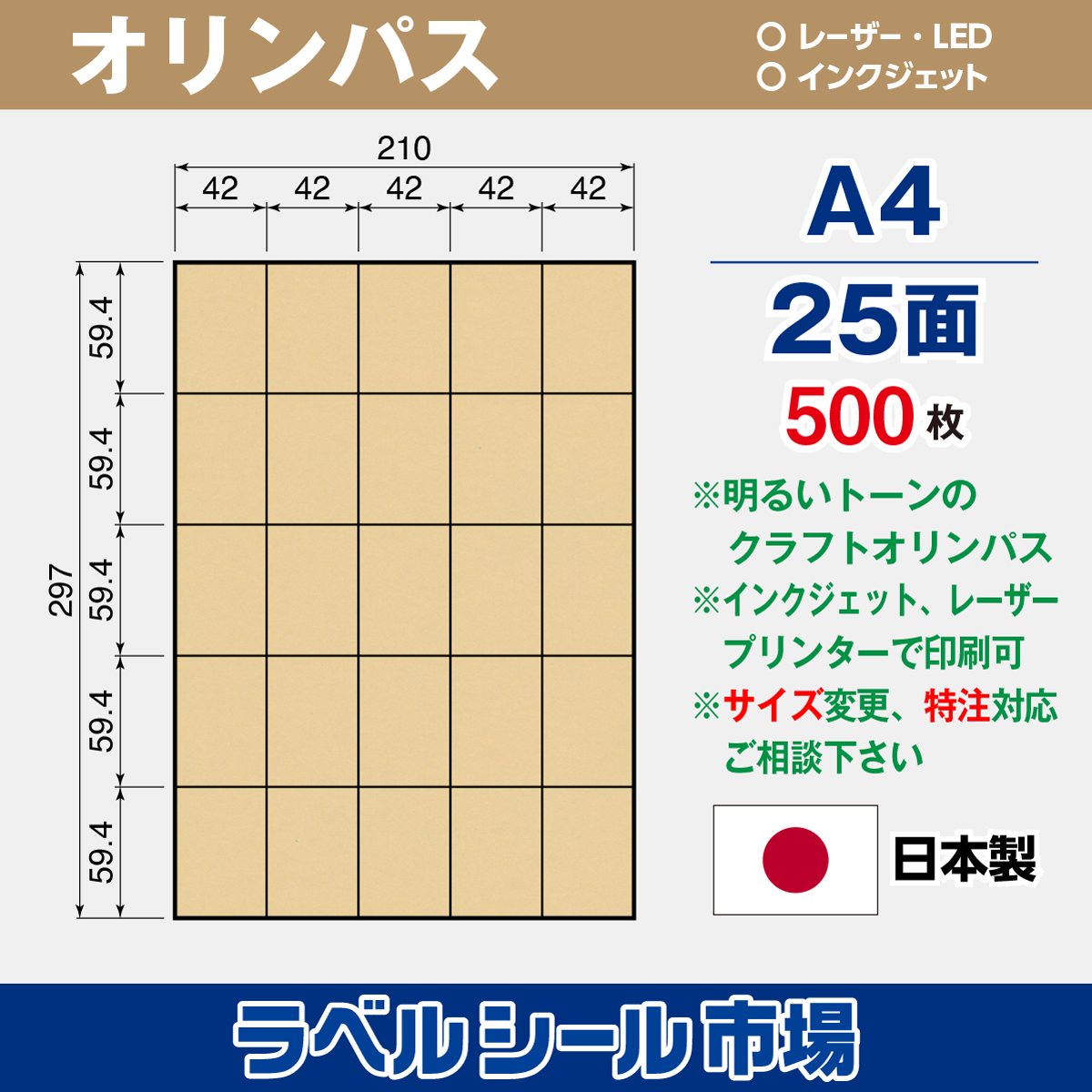 クラフト-オリンパスA4 25面 500枚