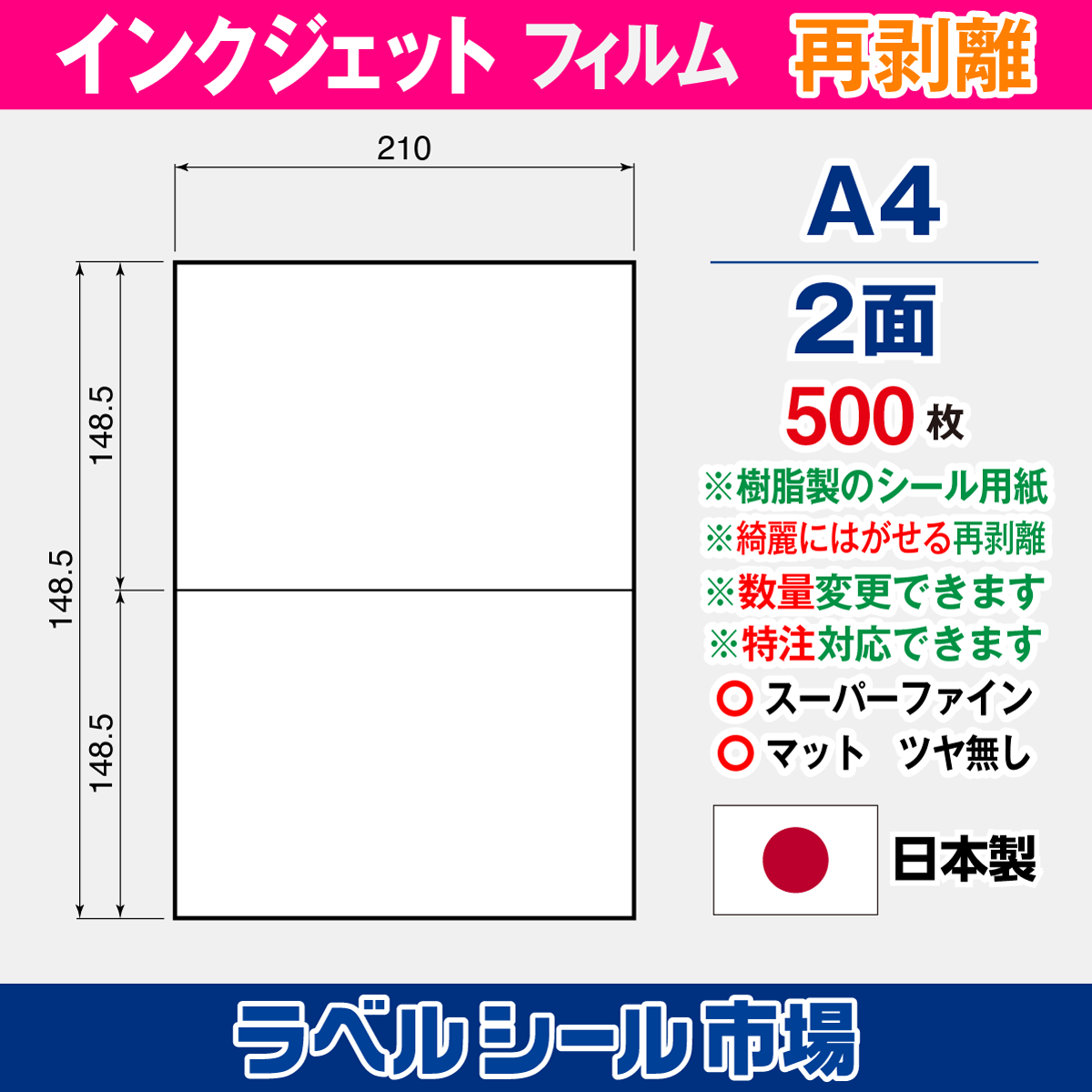 | A4-2面 500枚 フィルムT1Y2iDrh しっかり貼れて綺麗に剥がせる再剥離です。 | |