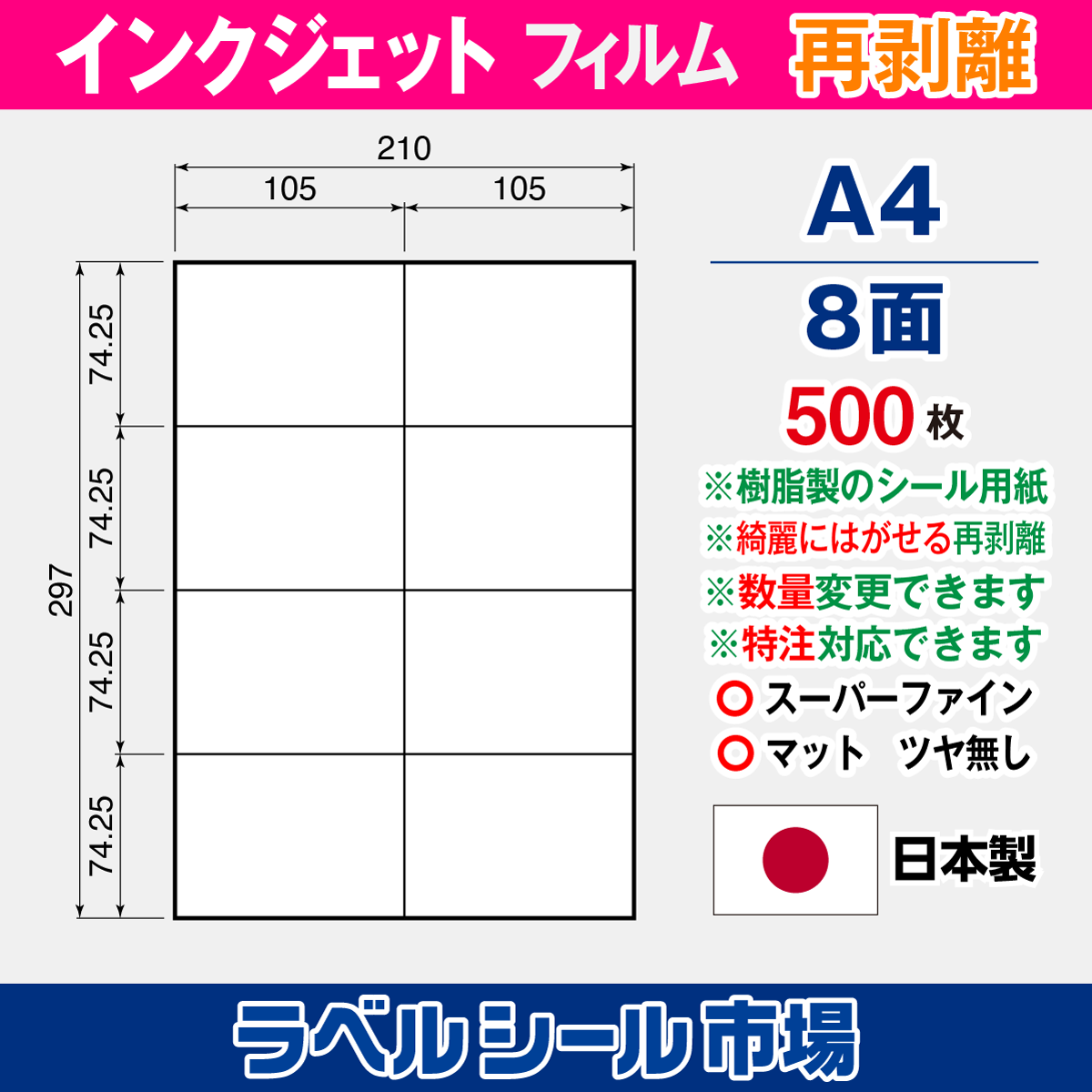 インクジェット専用フィルム再剥離 A4-8面 500枚