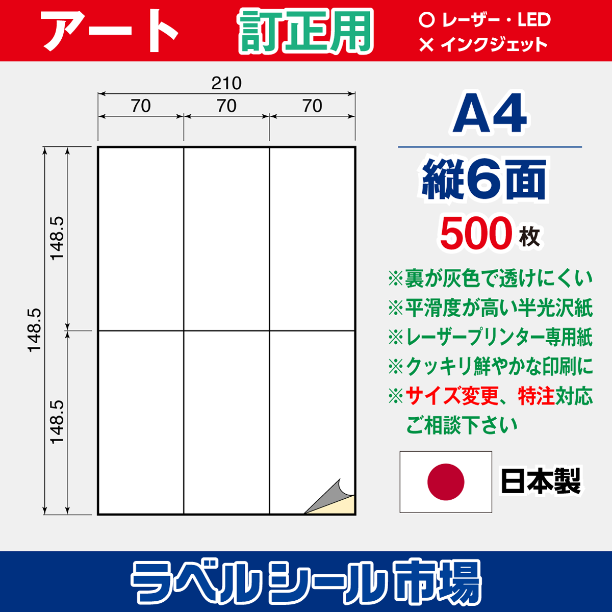 訂正用アート紙A4 縦6面500枚[レーザープリンタ]