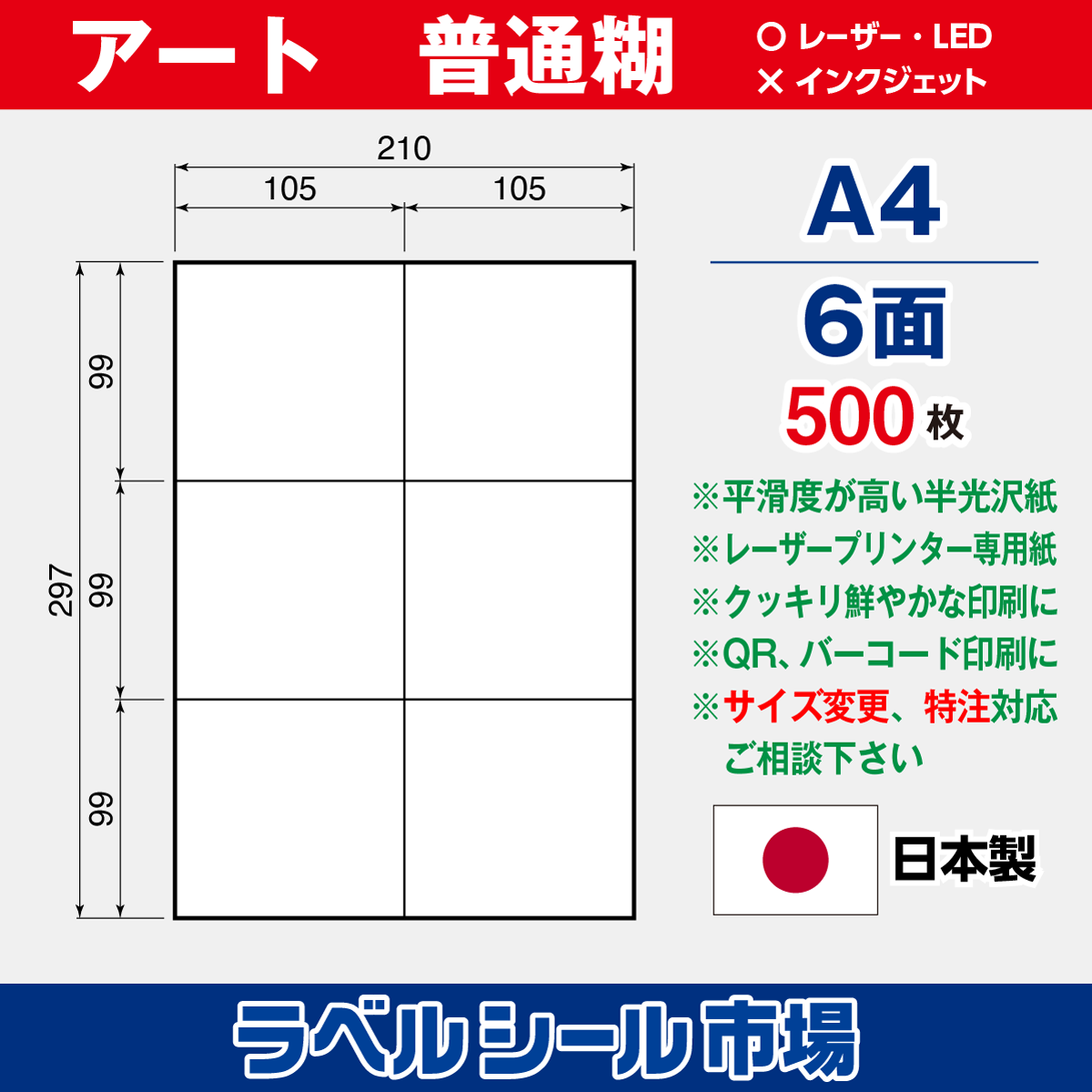 アート紙A4-6面500枚[レーザープリンタ]