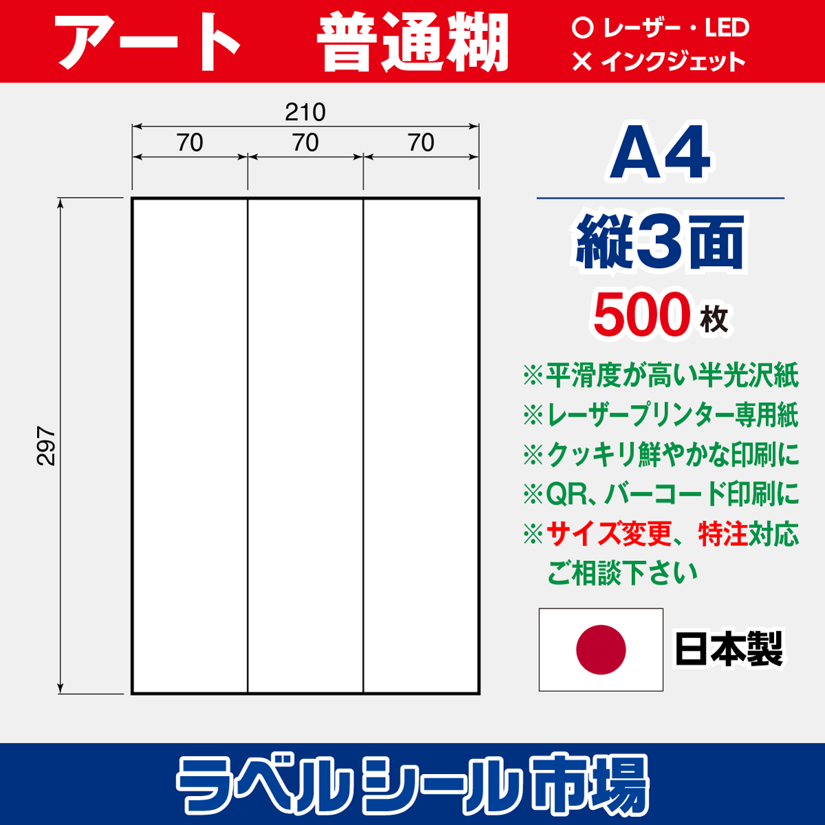 アート紙A4-縦3面500枚[レーザープリンタ]