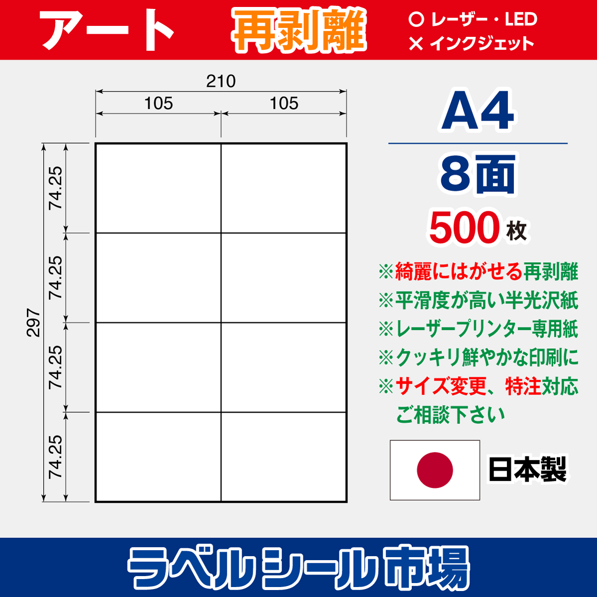 再剥離アート紙A4 8面 500枚[レーザープリンタ]