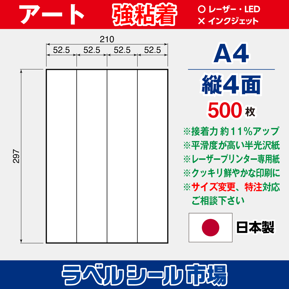 強粘着アート紙 A4 縦4面 500枚[レーザープリンタ]