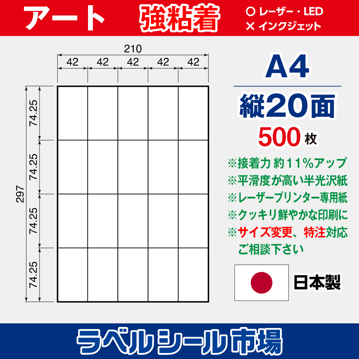 強粘着アート紙 A4 縦20面 500枚[レーザープリンタ]