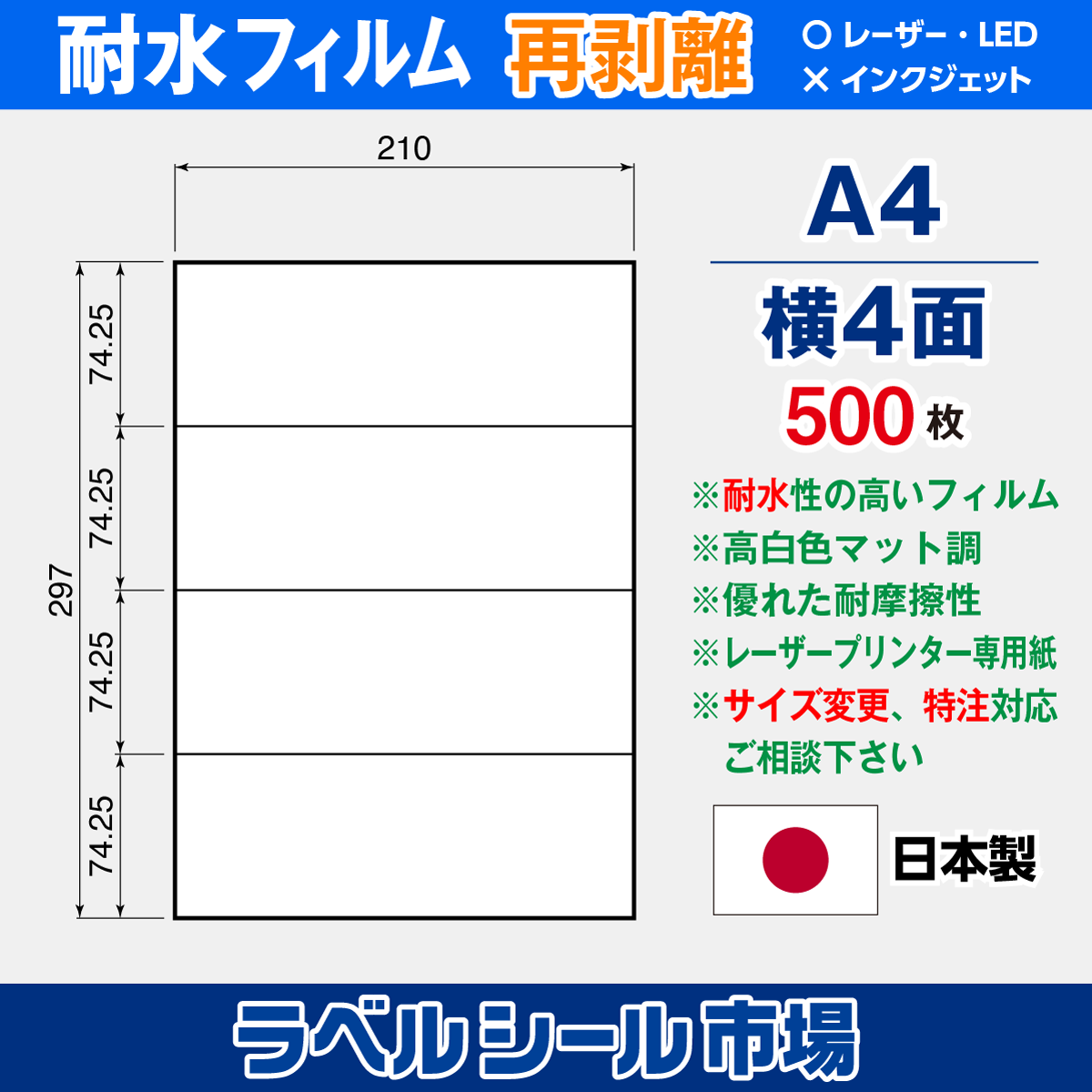 | A4-横4面 500枚 防水・耐水フィルム 再剥離 T1Y4Drh | |