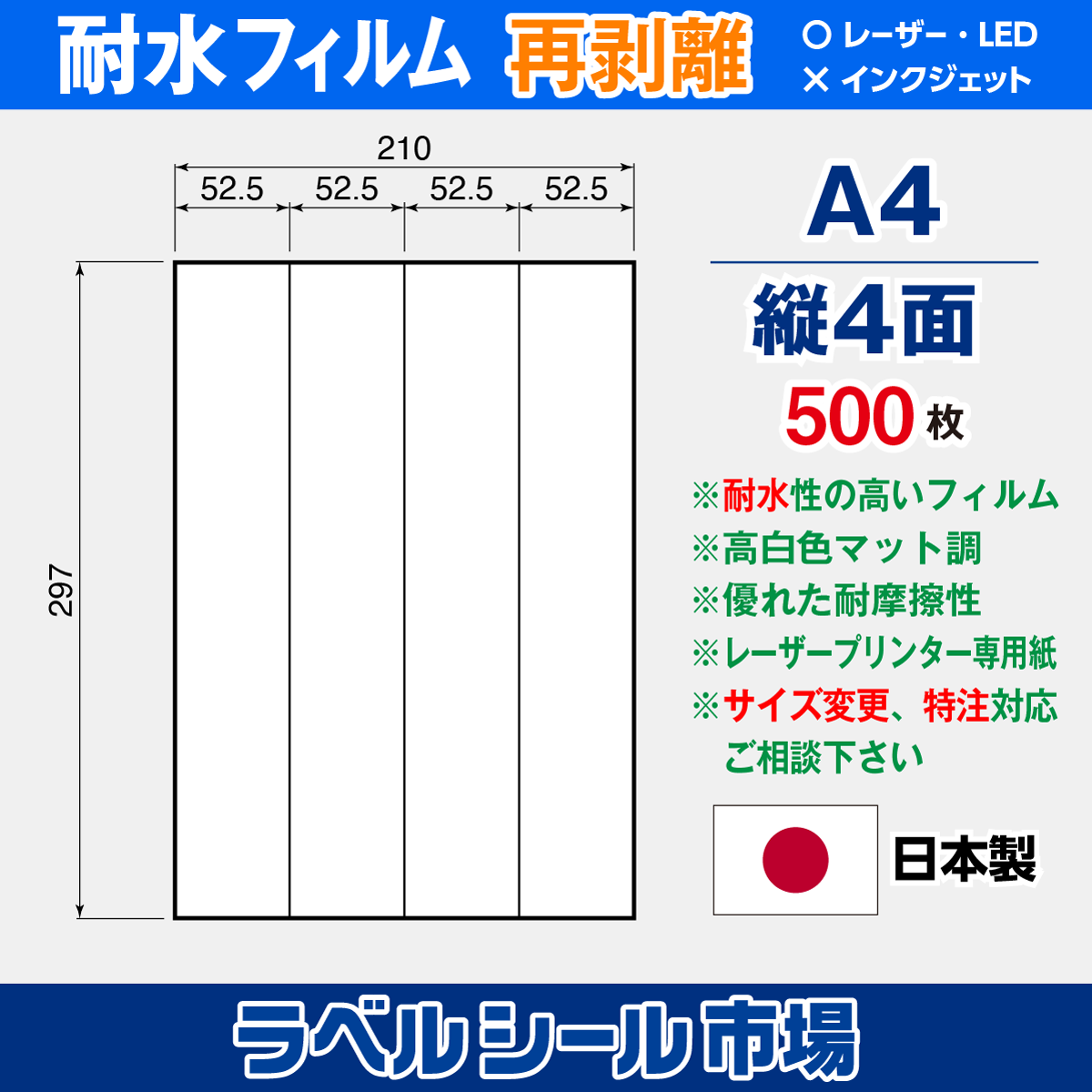 | A4-縦4面 500枚 防水・耐水フィルム 再剥離 T4Y1Drh | |