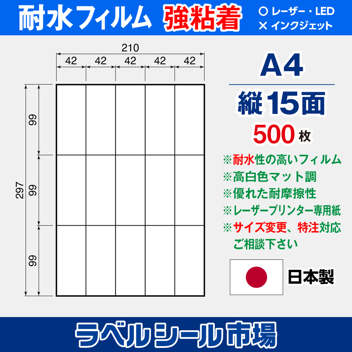 | A4-縦15面 500枚 耐水フィルムT5Y3D | |