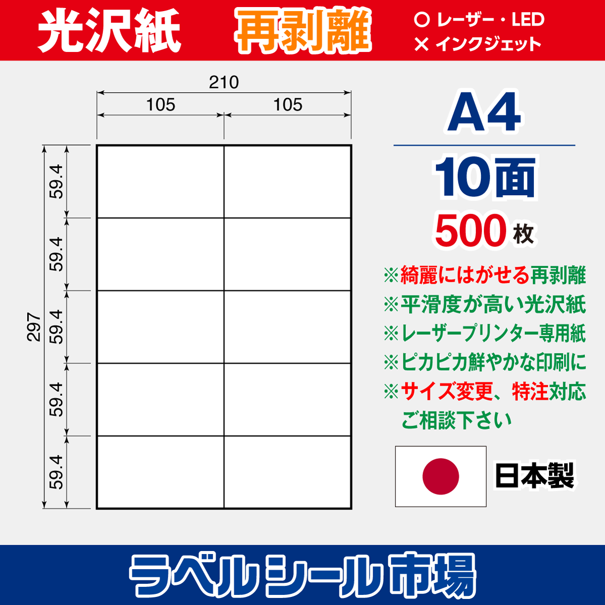 A4-10面 500枚 光沢紙 綺麗にはがせる再剥離T2Y5Crs