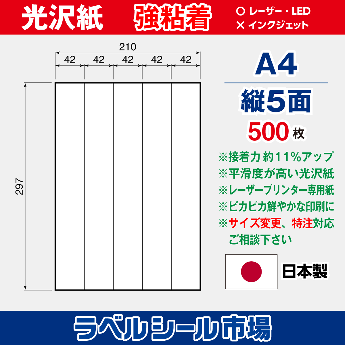 強粘着光沢紙 A4 縦5面 500枚[レーザープリンタ]