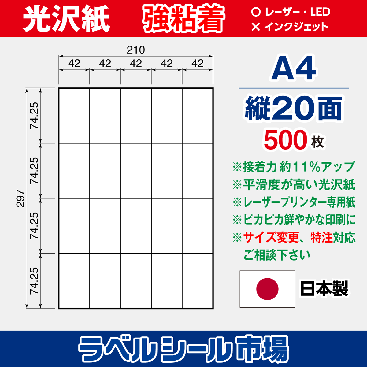 強粘着光沢紙 A4 縦20面 500枚[レーザープリンタ]