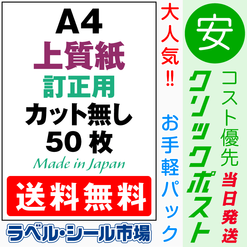 訂正用上質紙A4ノーカット50枚[マルチプリンタ]クリックポスト発送