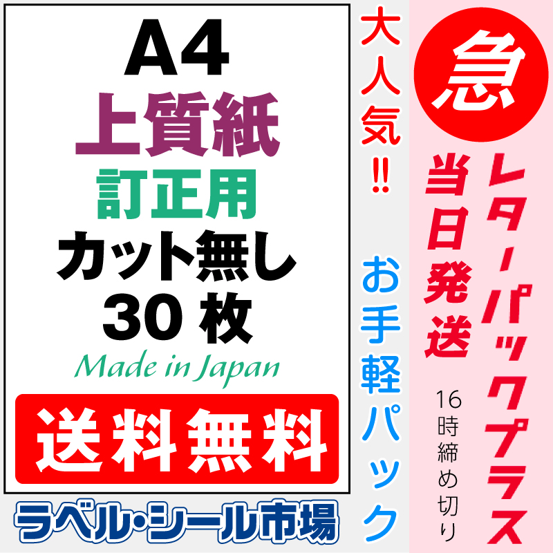 訂正用上質紙A4ノーカット20枚[マルチプリンタ]クリックポスト発送