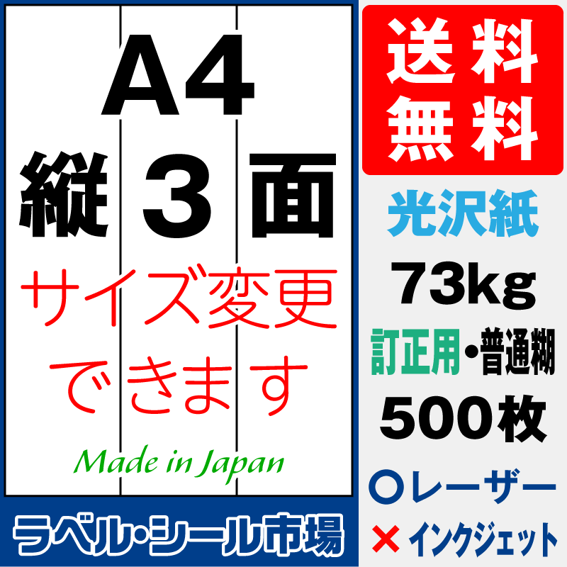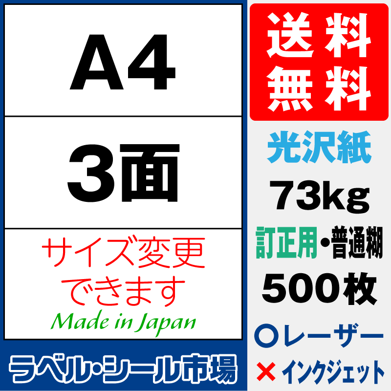 訂正用光沢紙 A4 3面 500枚[レーザープリンタ]