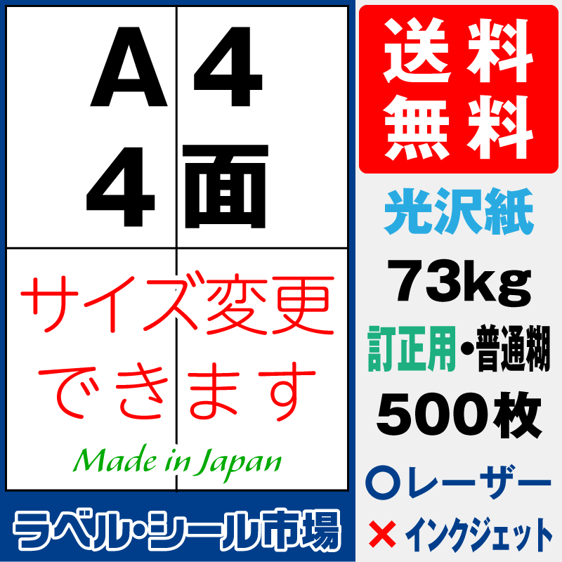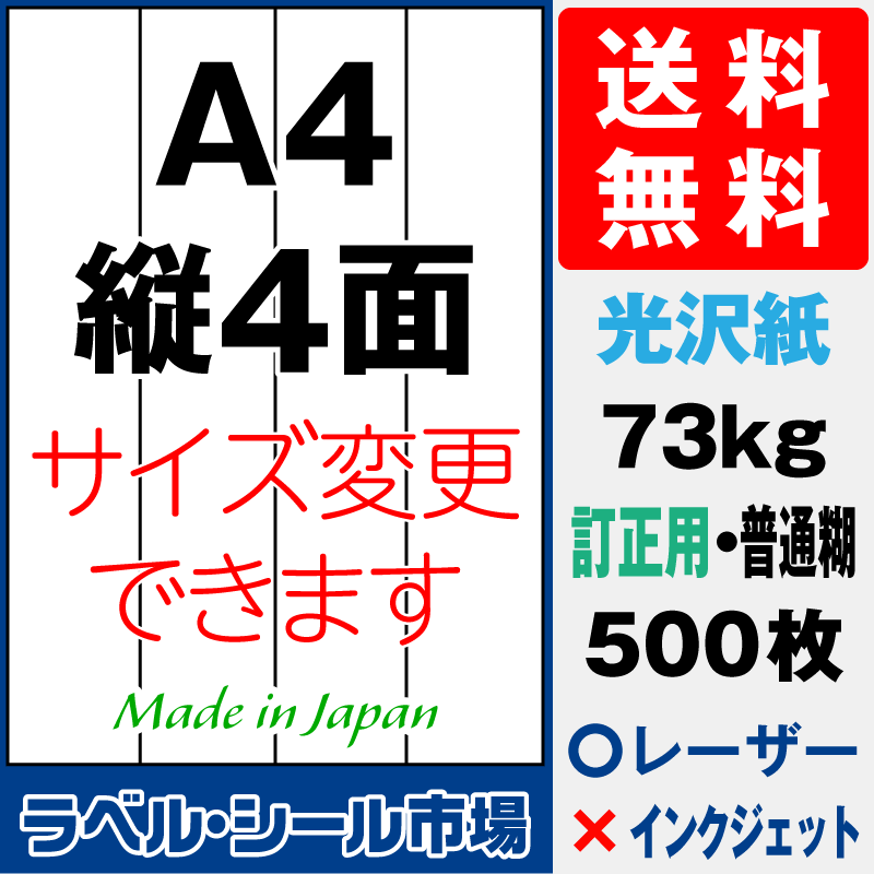 訂正用光沢紙 A4 横4面 500枚[レーザープリンタ]