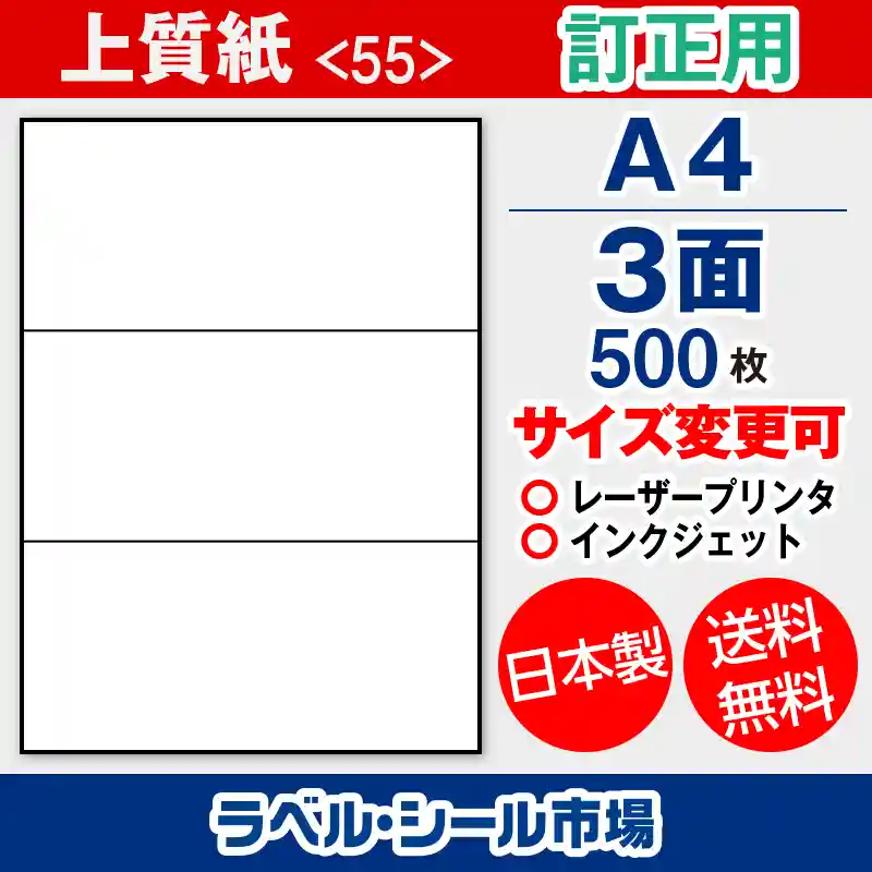 訂正用アート紙A4 3面500枚[レーザープリンタ]