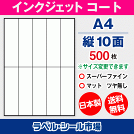 インクジェット用 高白色マットコート A4-縦10面 500枚