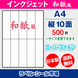 和紙インクジェット専用 A4-縦10面 スーパーファイン 500枚