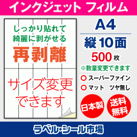 インクジェット専用フィルム再剥離A4-縦10面500枚