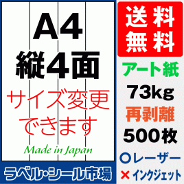 再剥離アート紙A4 縦4面 500枚[レーザープリンタ]