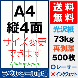 光沢紙A4-縦4面500枚[レーザープリンタ]