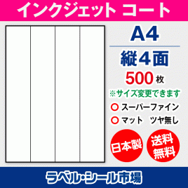 インクジェット用 高白色マットコート A4-縦4面 500枚