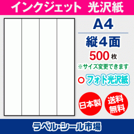 インクジェット専用フォト光沢紙 A4-縦4面 500枚