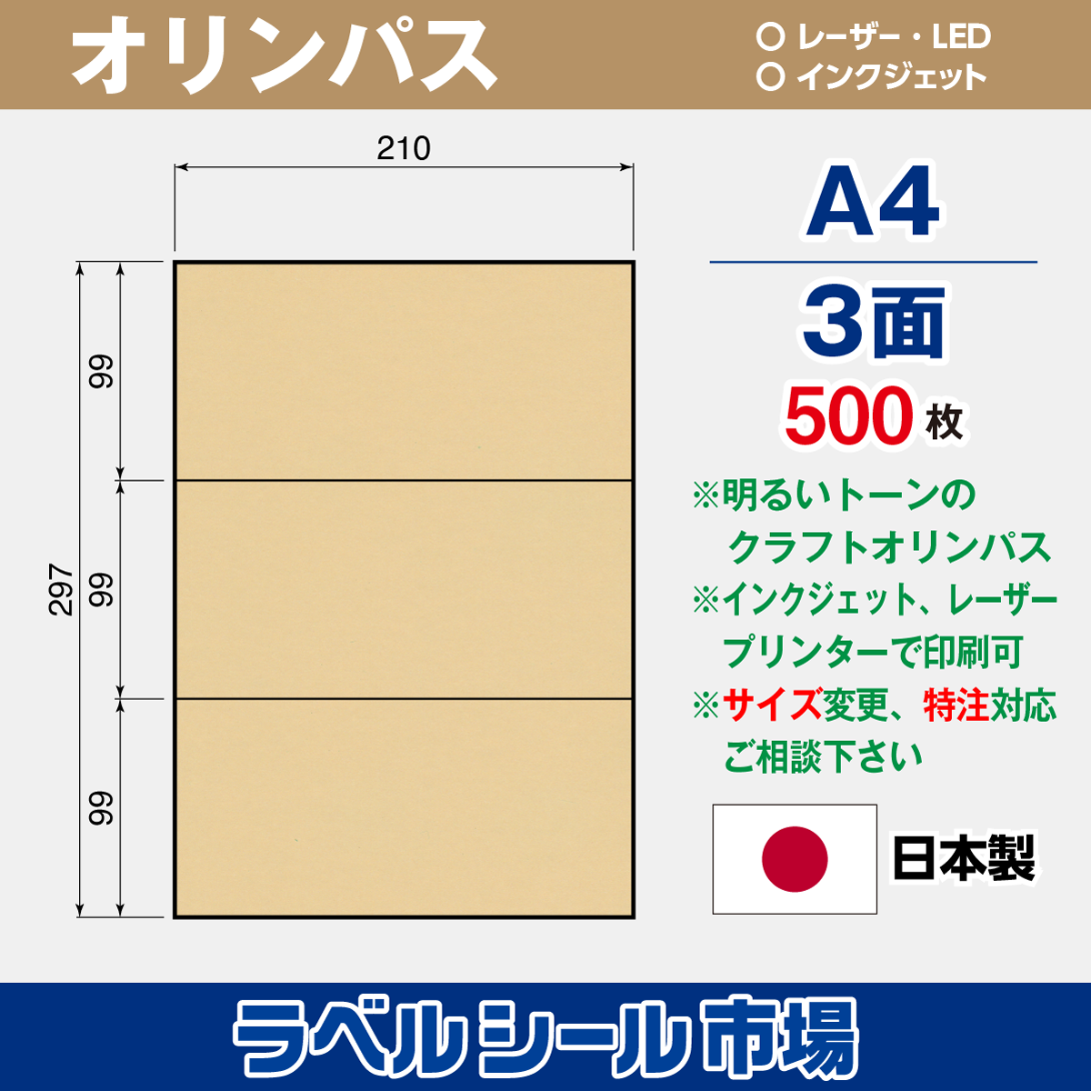 | A4-3面 500枚 半晒クラフト オリンパス T1Y3O | |