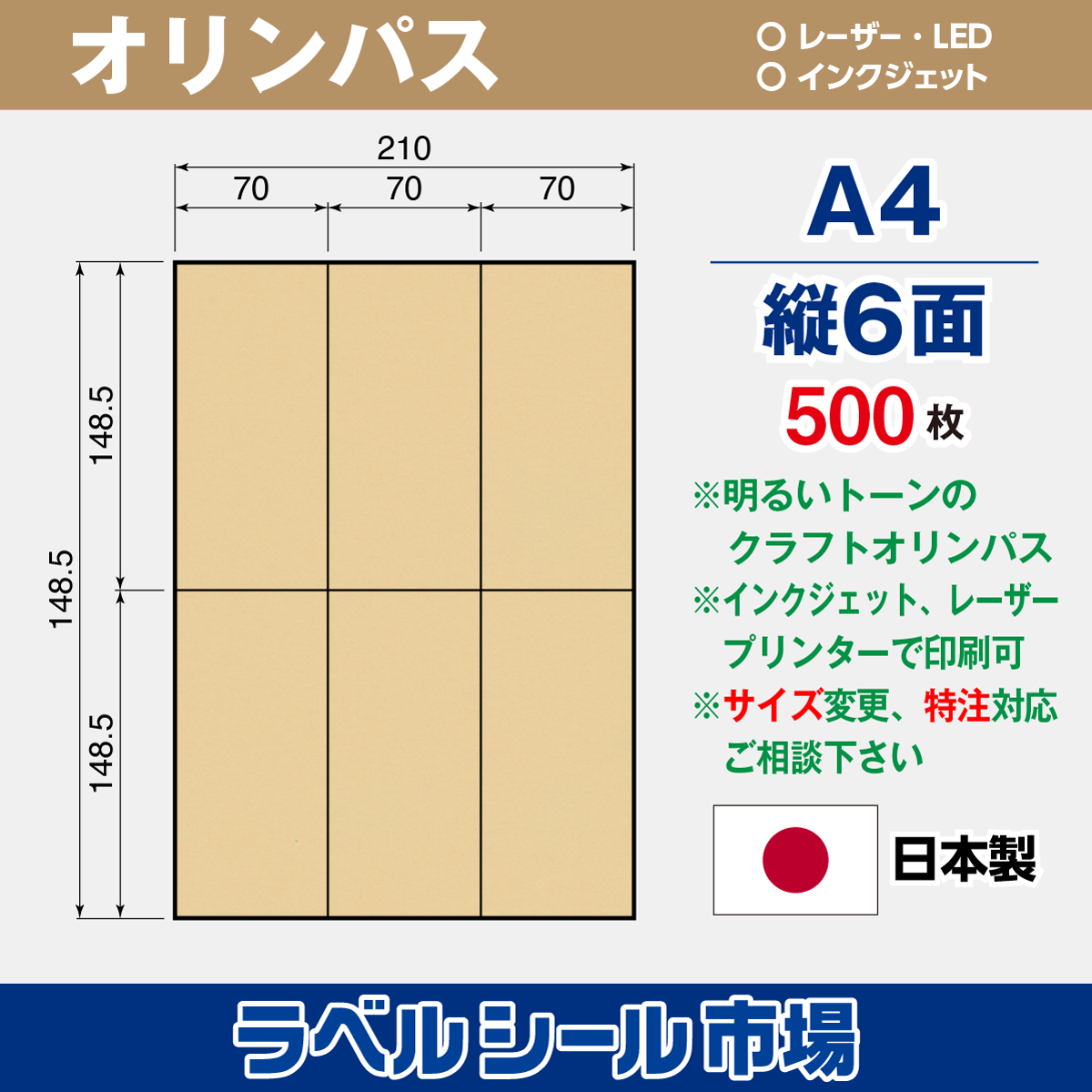 | A4-縦6面 500枚 半晒クラフト オリンパス T3Y2O | |