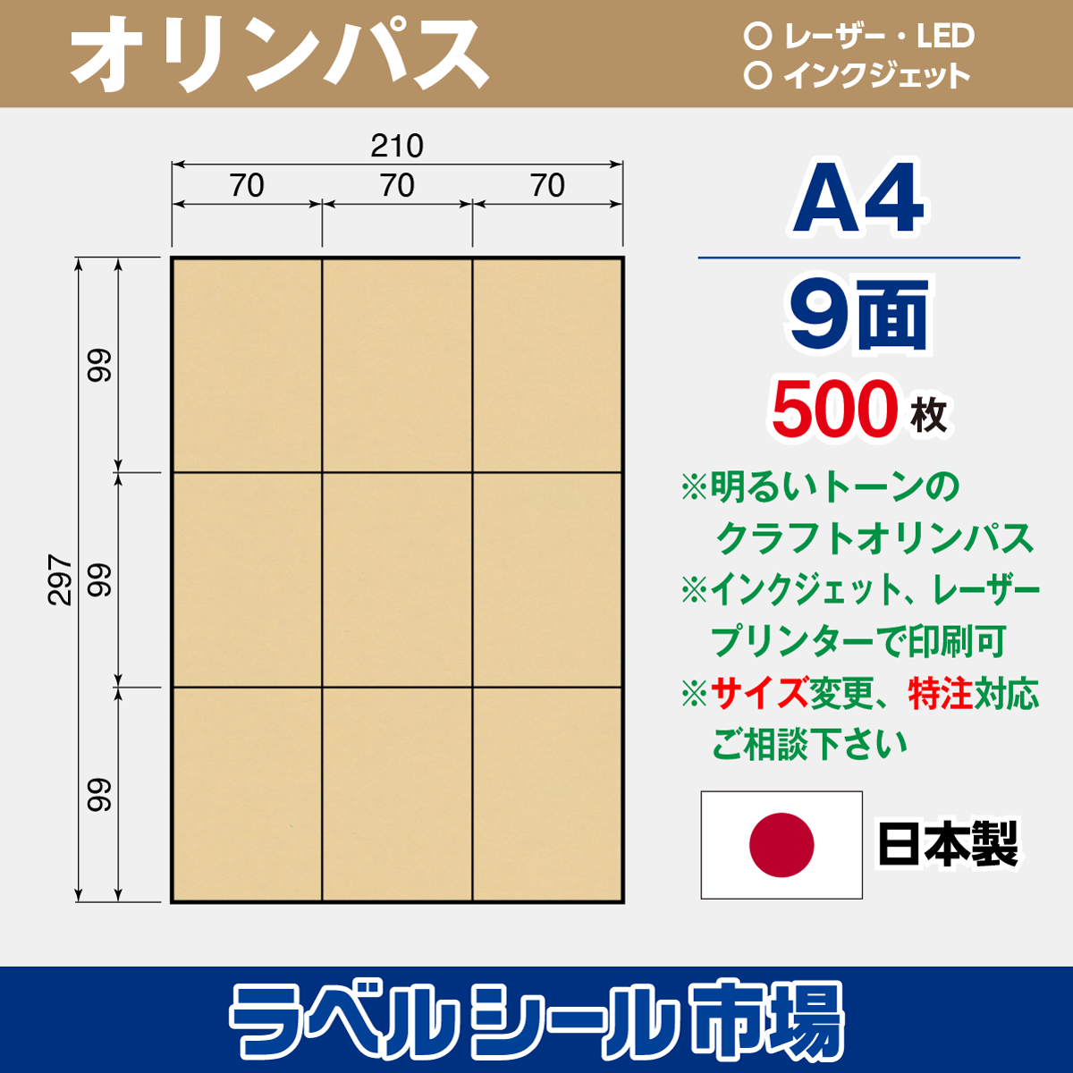 クラフト-オリンパスA4 9面 500枚