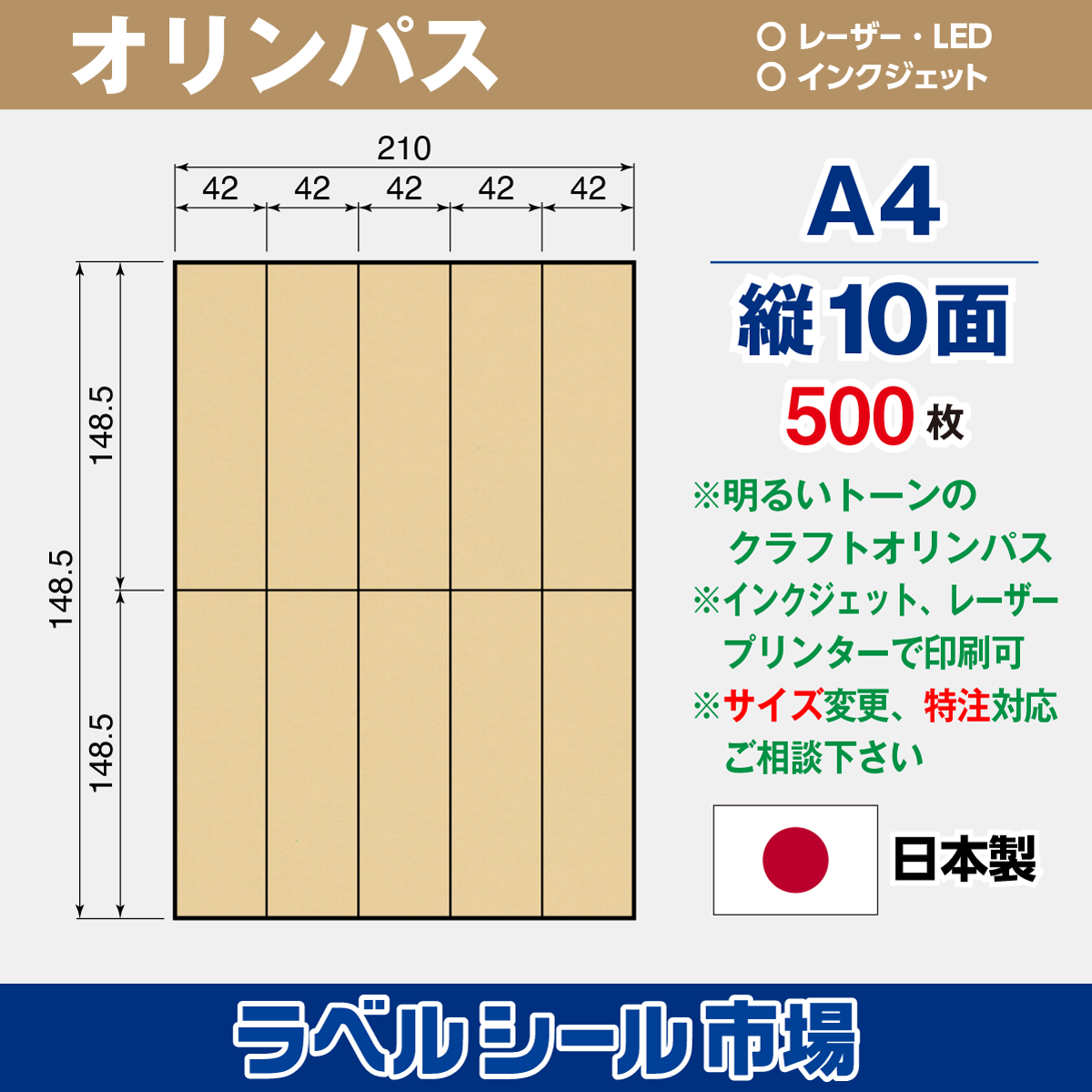 | A4-縦10面 500枚 半晒クラフト オリンパス T5Y2O | |