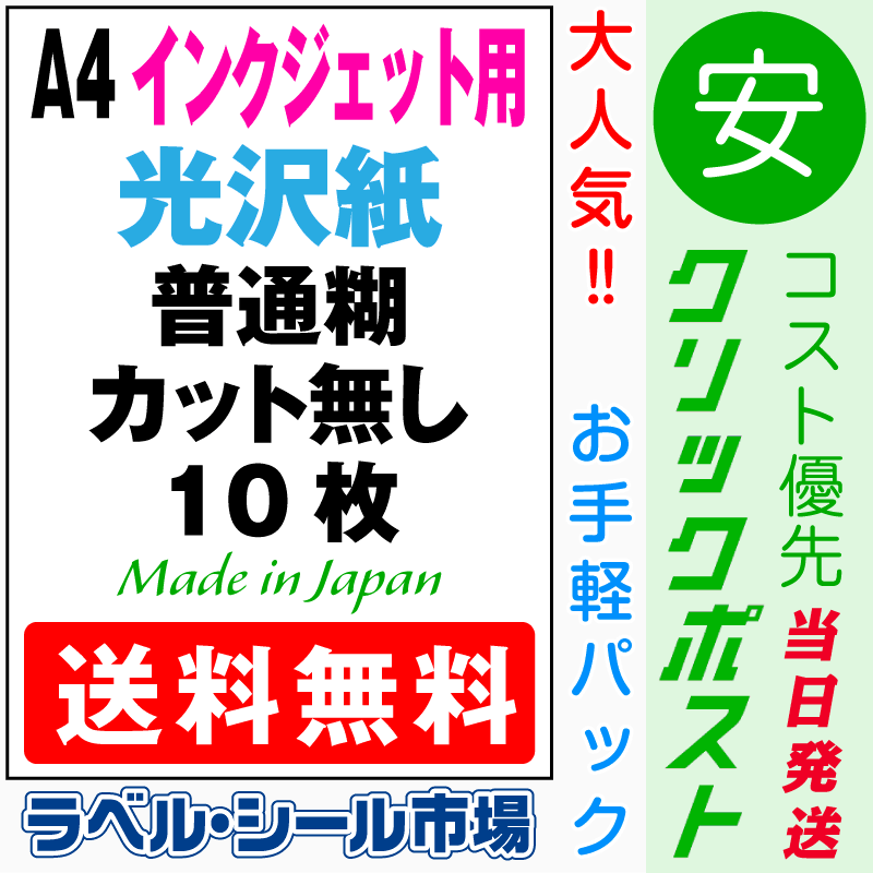 インクジェット専用フォト光沢紙A4ノーカット10枚 クリックポスト発送
