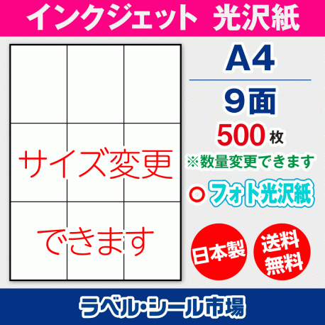 インクジェット専用フォト光沢紙 A4-9面 500枚