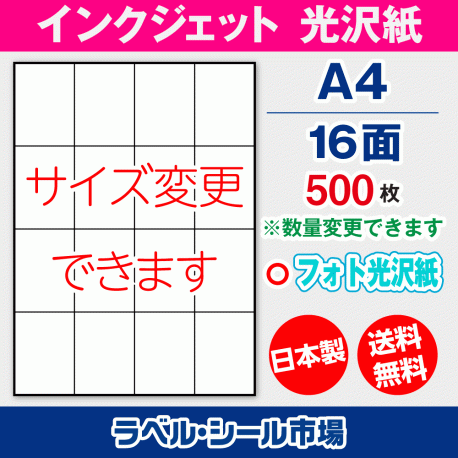 インクジェット専用フォト光沢紙 A4-16面 500枚