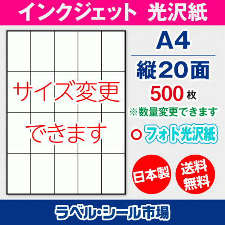 インクジェット専用フォト光沢紙 A4-縦20面 500枚