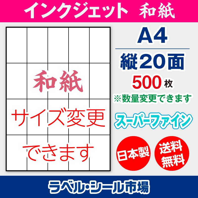 和紙インクジェット専用 A4-縦20面 スーパーファイン 500枚