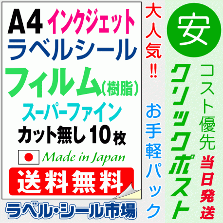 インクジェット専用フィルム A4 ノーカット10枚 クリックポスト発送