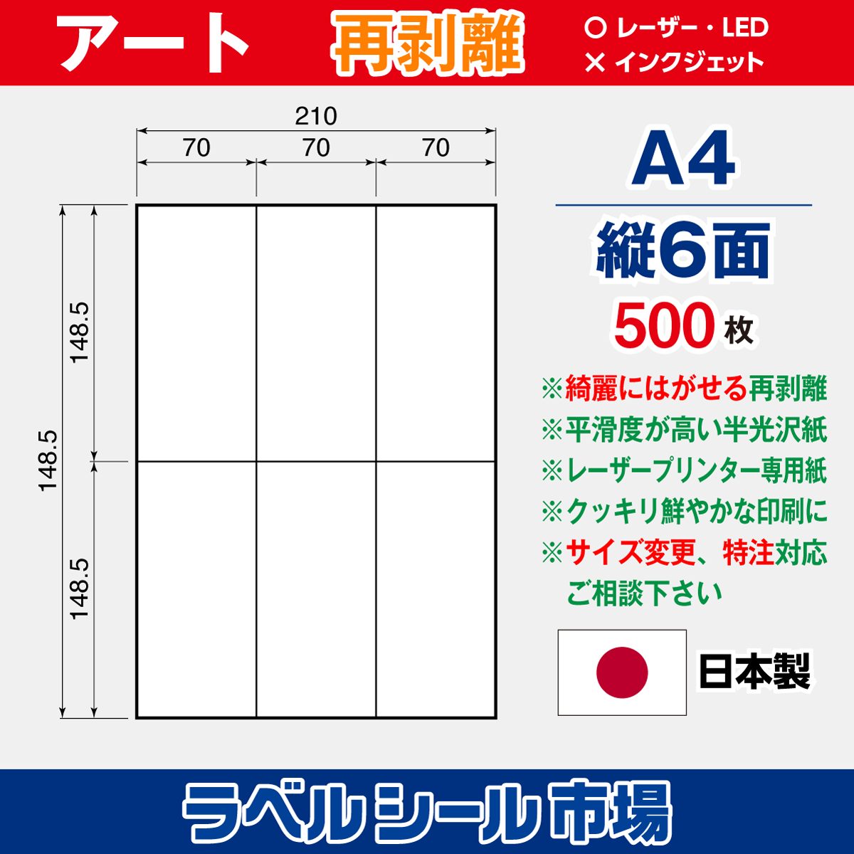 再剥離アート紙A4 縦6面 500枚[レーザープリンタ]
