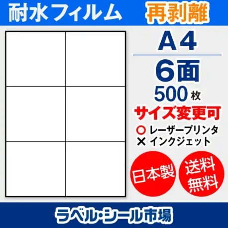 | A4-6面 500枚 防水・耐水フィルム 再剥離 T2Y3Drh | |