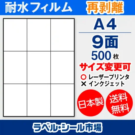 防水・耐水フィルム 再剥離 A4-9面 500枚