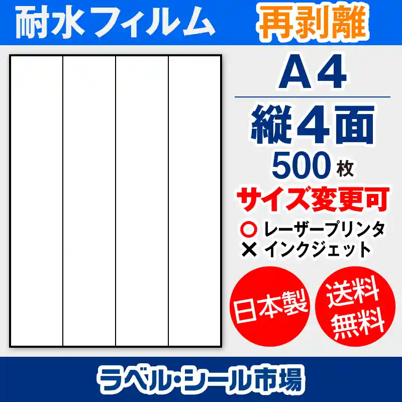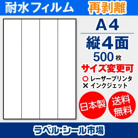 | A4-縦4面 500枚 防水・耐水フィルム 再剥離 T4Y1Drh | |