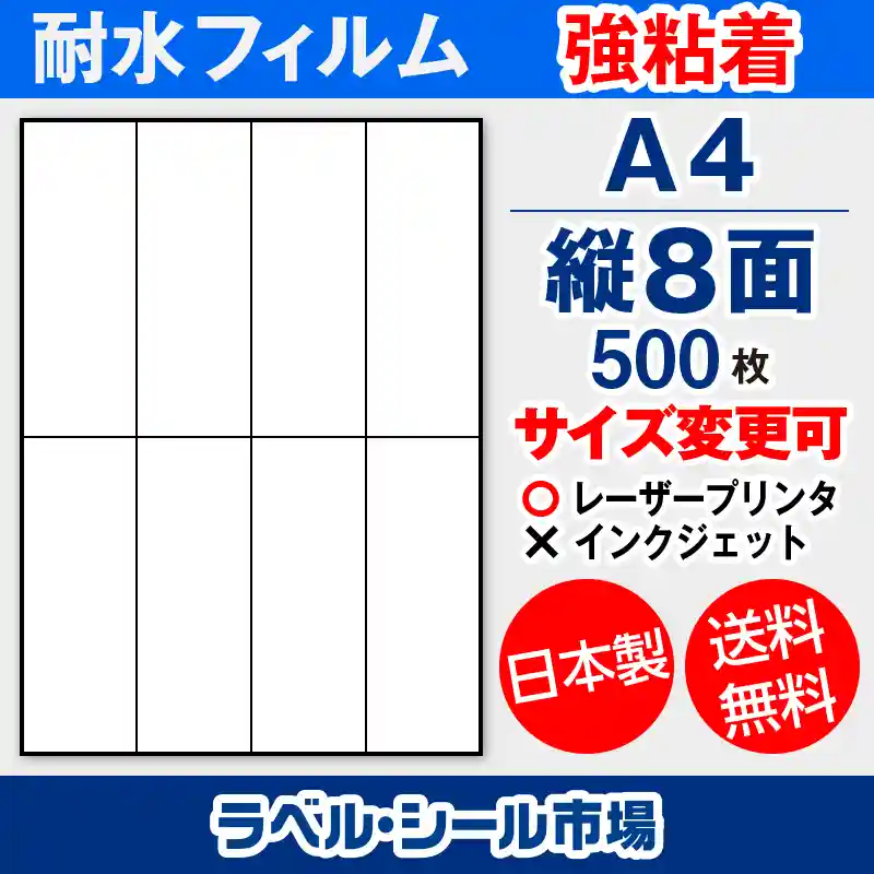 防水・耐水フィルム 強粘着 A4-縦8面 500枚