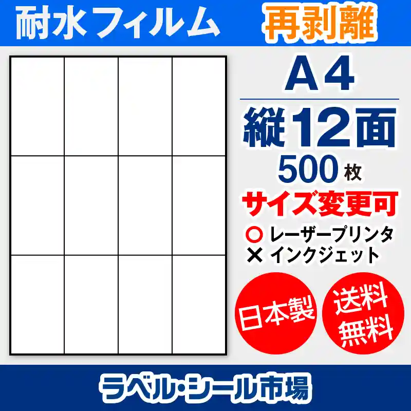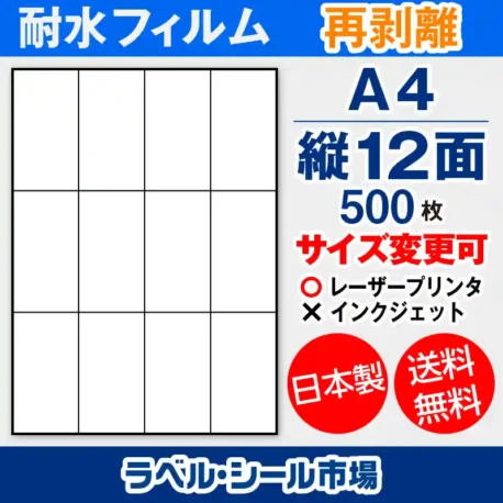 | A4-縦12面 500枚 防水・耐水フィルム 再剥離 T4Y3Drh | |