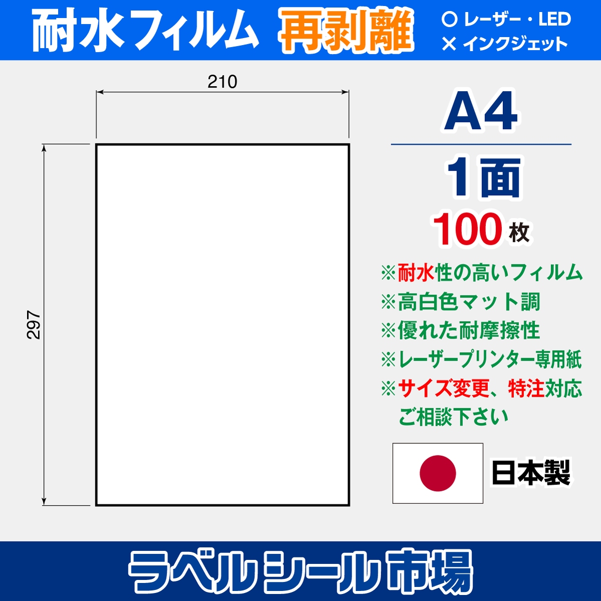 | A4-ノーカット100枚 防水・耐水フィルム 再剥離 T1Y1Drh-1 | |