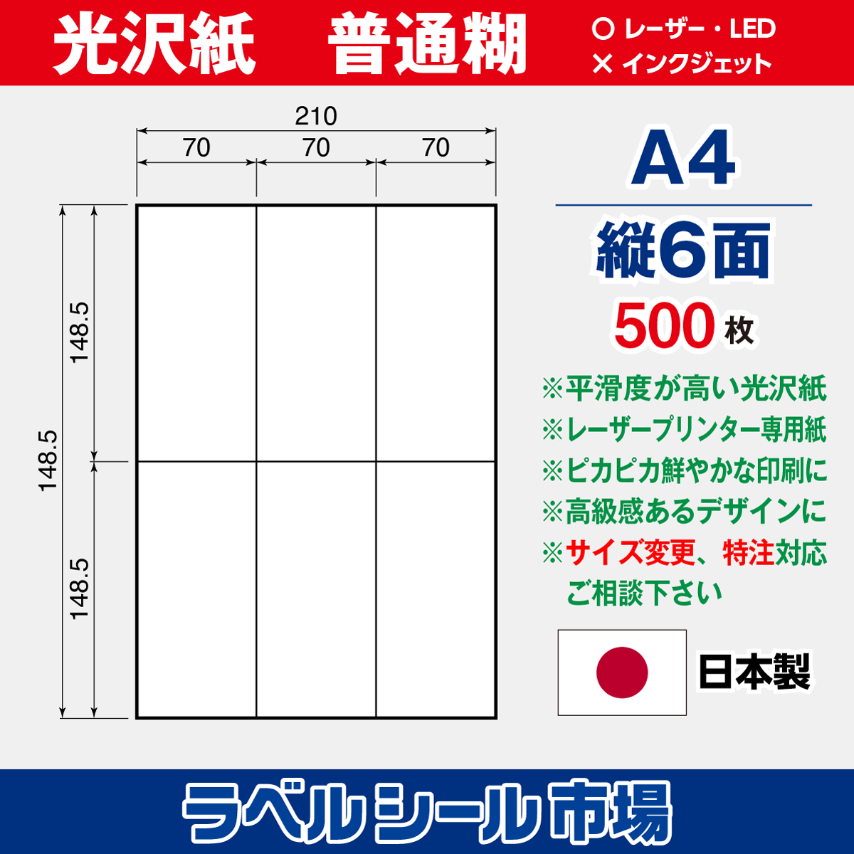 光沢紙A4-縦6面500枚[レーザープリンタ]