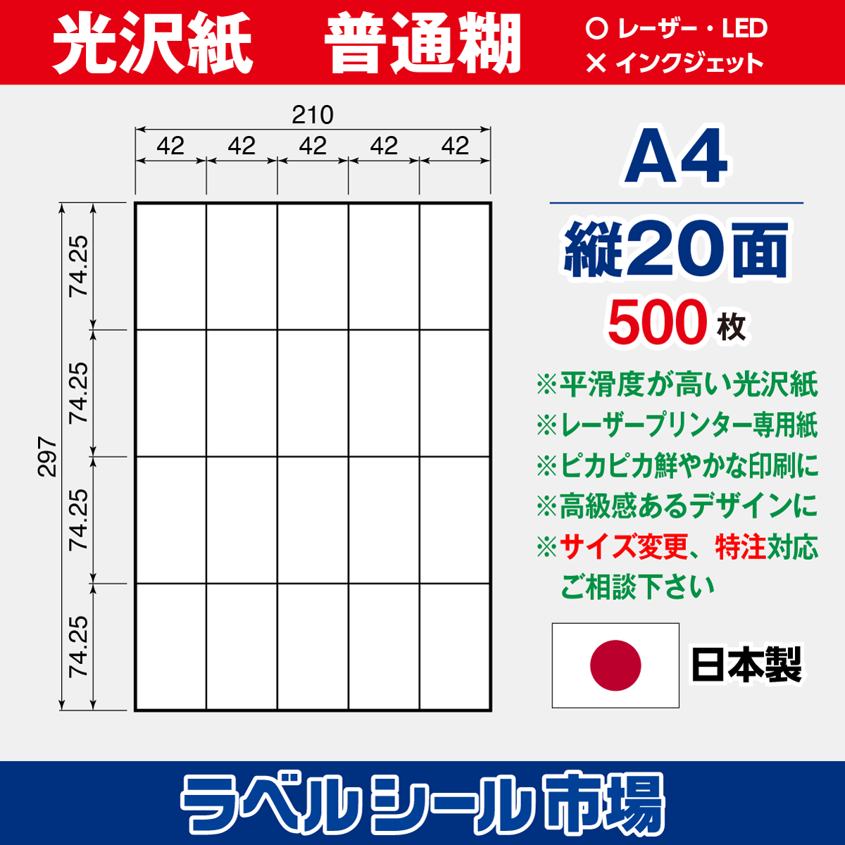 光沢紙A4-縦20面500枚[レーザープリンタ]
