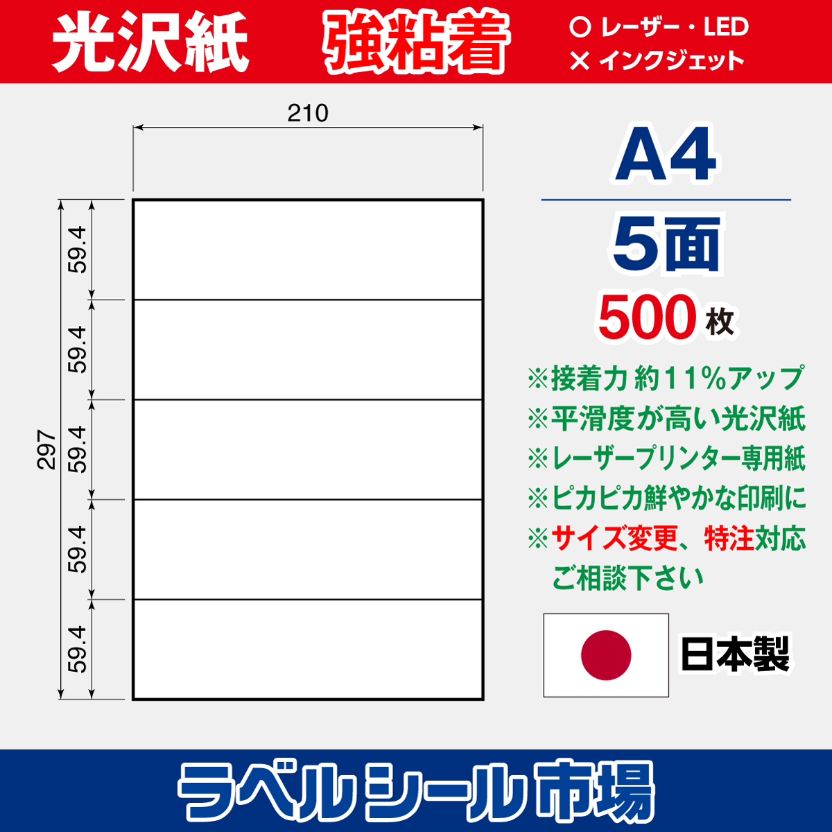 強粘着光沢紙 A4 5面 500枚[レーザープリンタ]