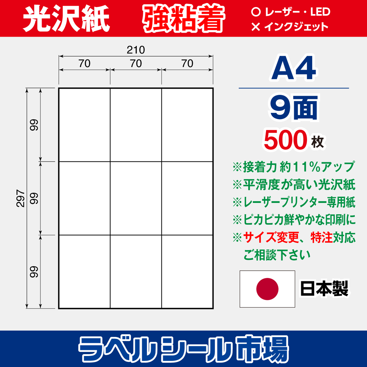 強粘着光沢紙 A4 9面 500枚[レーザープリンタ]