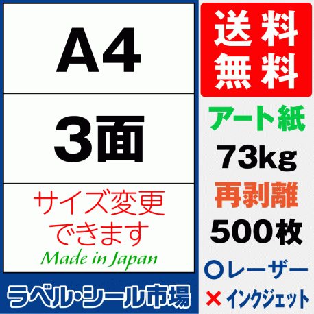 再剥離アート紙A4 3面 500枚[レーザープリンタ]
